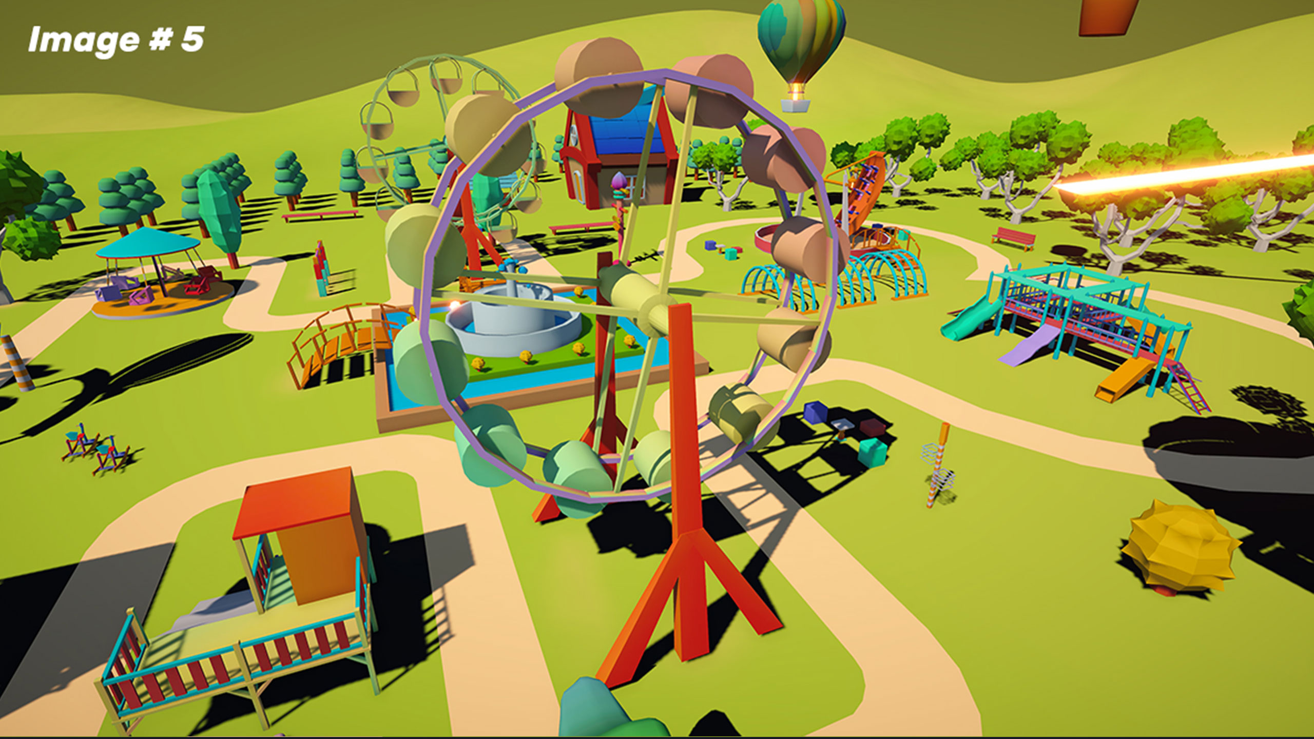 The 3D Amusement Park Environment is a collection of fully optimized, low-poly park objects perfect for creating a diverse and captivating park setting. This pack includes 3D park assets like trees, benches, grass, slides, swings, fountains, and more, ideal for casual and indie games, VR, and simulators. With vibrant colors and high-quality 3D graphics, each object looks attractive. You can easily animate these amusement park 3D models to bring your park to life. The pack offers ready-to-use prefabs, making it easy to drag and drop elements into your scene. The detailed textures and eye-catching visuals ensure a stunning and immersive experience.